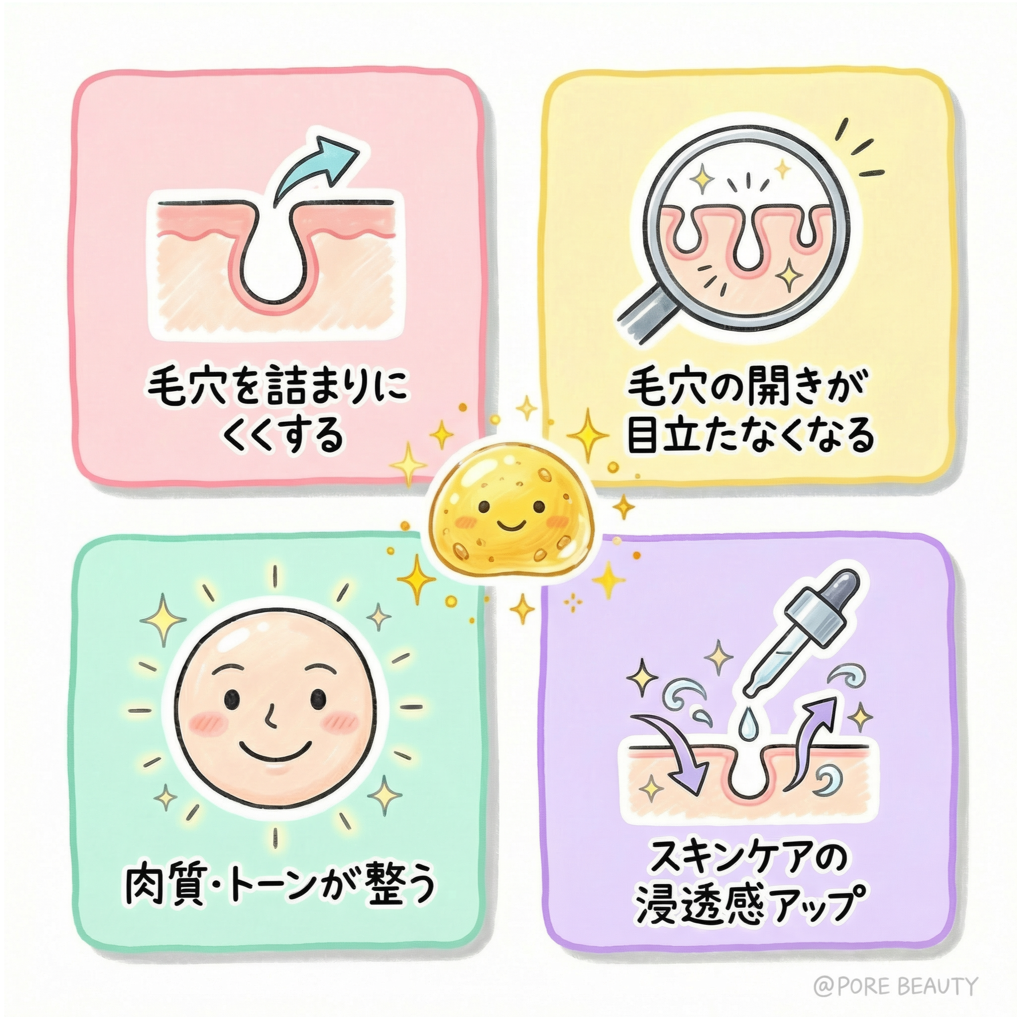 - 1 毛穴の詰まりが繰り返しにくくなる 定期的に角栓や皮脂汚れを取り除くことで、毛穴が常にクリアな状態に近づきます。 「詰まっては取る」ではなく、「詰まらせない」サイクルへと移行していくイメージです。