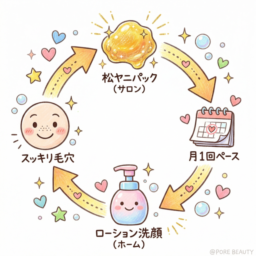 図③:松ヤニパック+日常ケアで作る「詰まらせない」サイクル