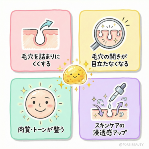 | 定期的に継続 | 毛穴が詰まりにくい肌環境が整っていく | 効果が出るまで数回かかることも |