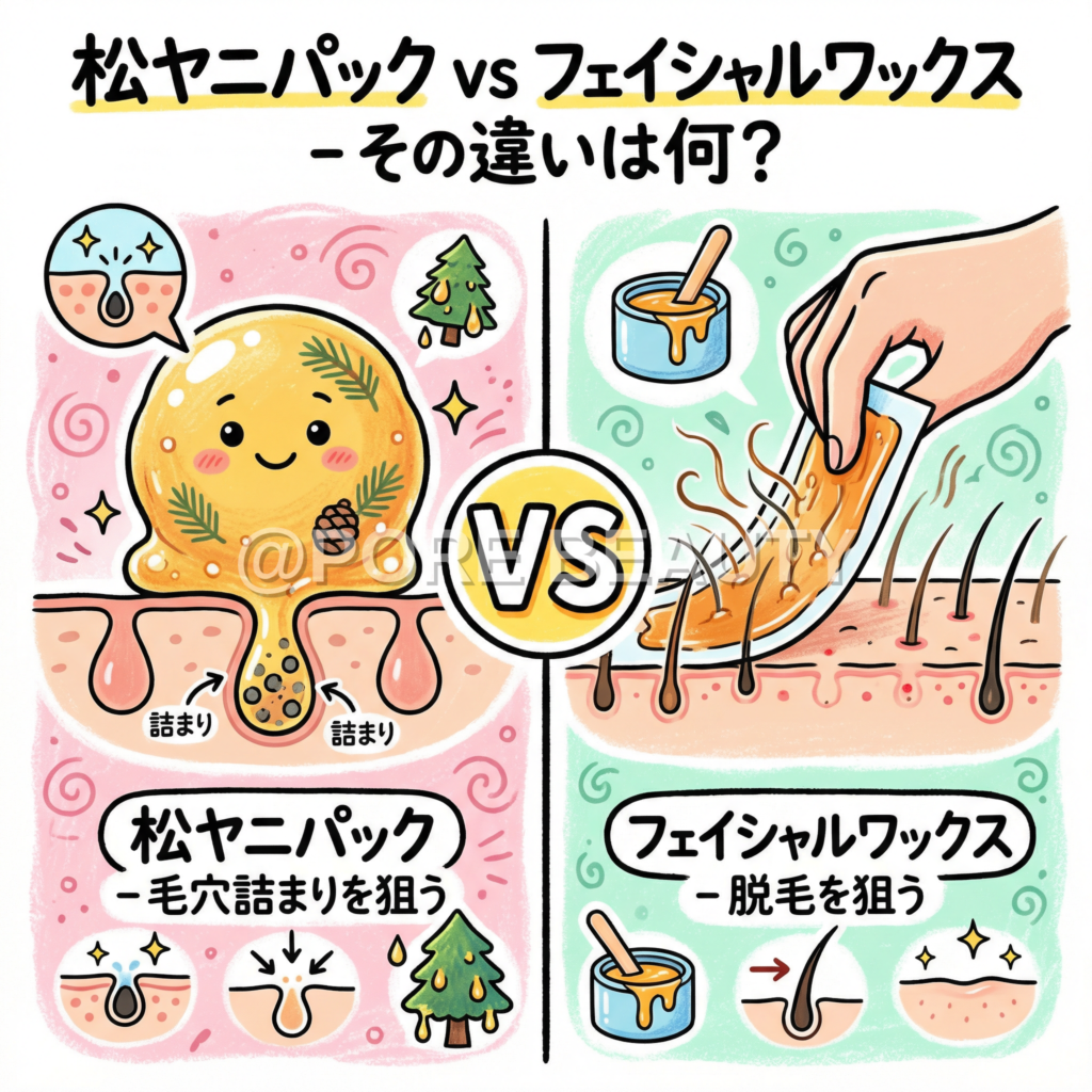 松ヤニパックとフェイシャルワックスの違いを整理すると、以下のようになります。