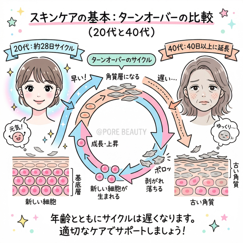 なぜ40代になると肌が変わるのか?ターンオーバーの仕組み