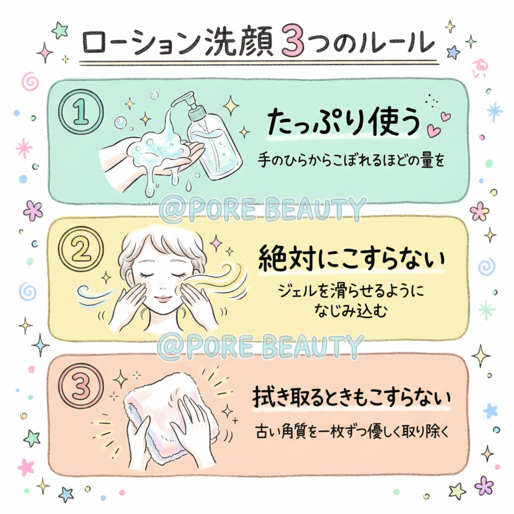 ローション洗顔で効果を最大限に引き出すためには、自己流ではなく、正しい手順で行うことが何よりも大切です。